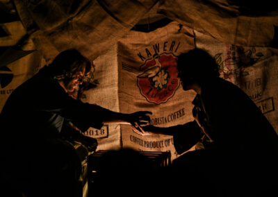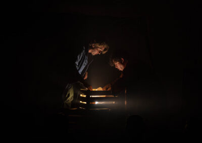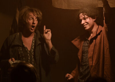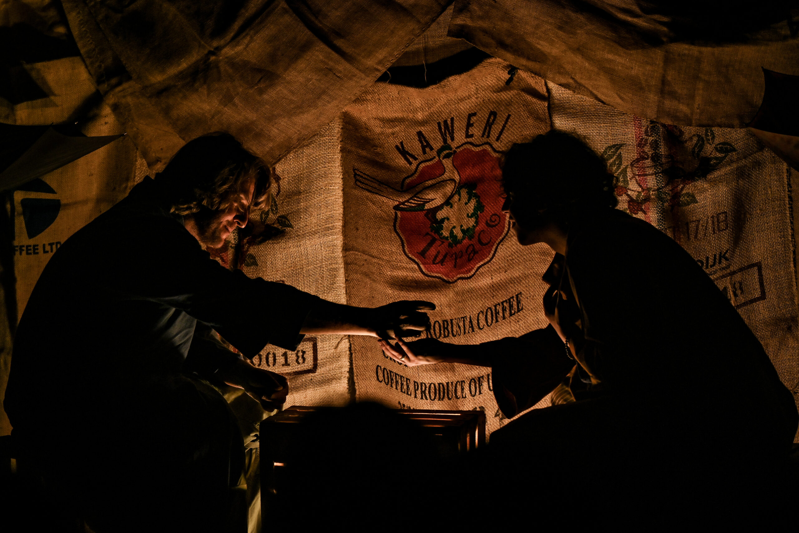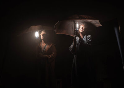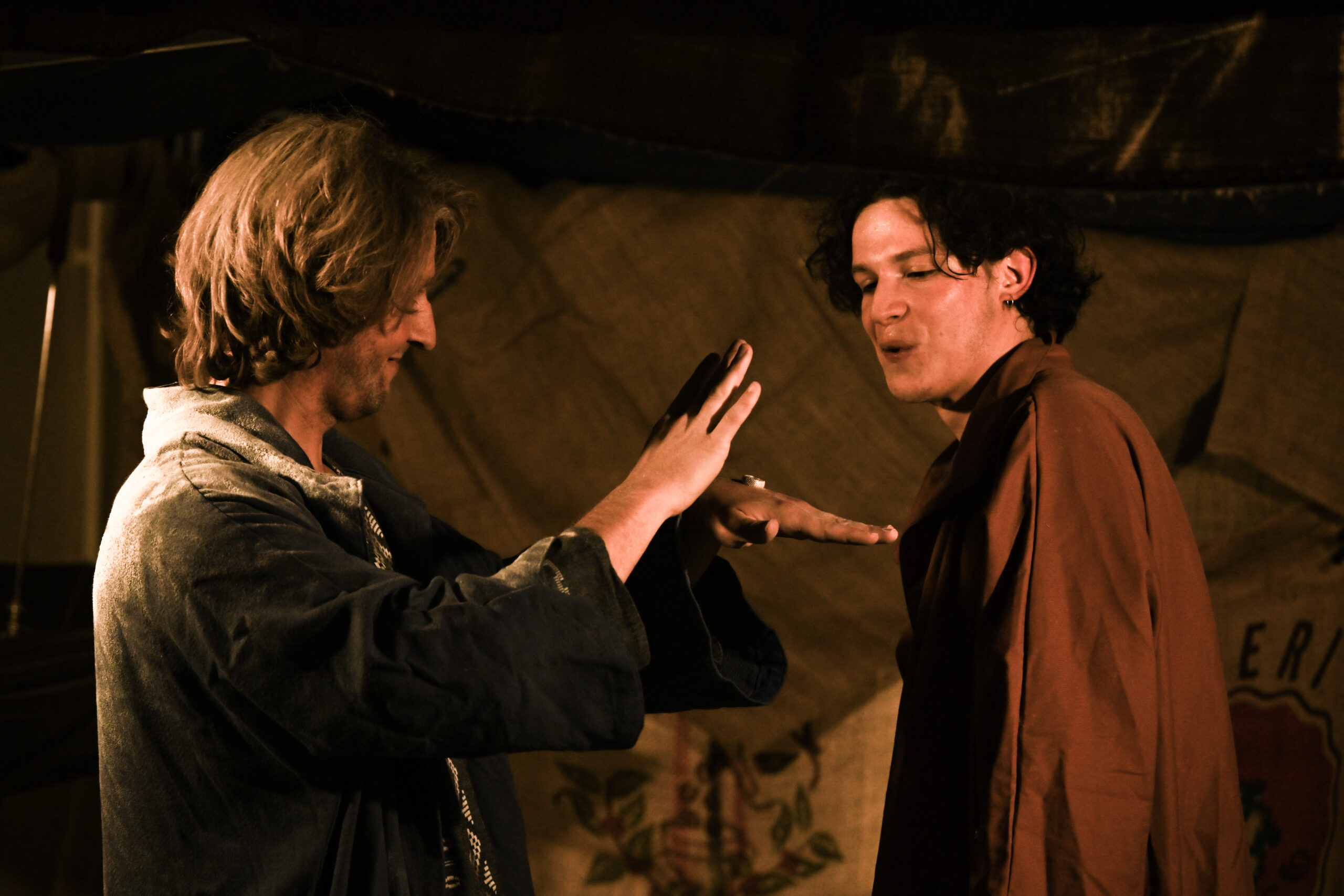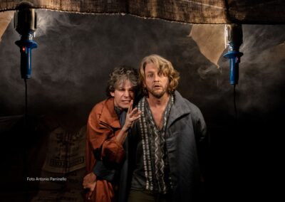 “Il teatro dovrebbe essere soltanto un incontro tra esseri umani. Tutto il resto serve a confondere”, scrive Ingmar Bergman. L’umanità che vive il teatro, nel pubblico o sulla scena, condivide la propria storia. A volte raccontandola, come fanno gli attori, altre restando anche solo in ascolto. Una cosa è certa: l’esperienza di uno spettacolo ci cambia sempre e non lasciamo mai un teatro uguali a come ci siamo entrati. Come quando un bambino ascolta a bocca aperta le imprese del nonno, accanto al camino. Questo è proprio quello che è accaduto a Levante e Ponente una mattina di primavera al Mercato Centrale della Grande Città. Sono le prime luci di un giorno di lavoro come tanti altri, eppure diverso: ai due mercanti venuti a vendere la propria mercanzia, accade qualcosa di insolito. Nessuno degli altri banchetti è stato allestito e nessun cliente sembra venire loro incontro. La piazza è deserta, come prima di una tempesta. Ponente e Levante si guardano con gli occhi di chi si conosce da una vita, pur senza essersi mai visti. E pensare che hanno visto i mercati d’ogni angolo del Globo… I venti che portano nel loro nome soffiano da sempre tanto sulla Vecchia Europa quanto sui Paesi più esotici e hanno attraversato le città più moderne e i caravanserragli più insoliti.