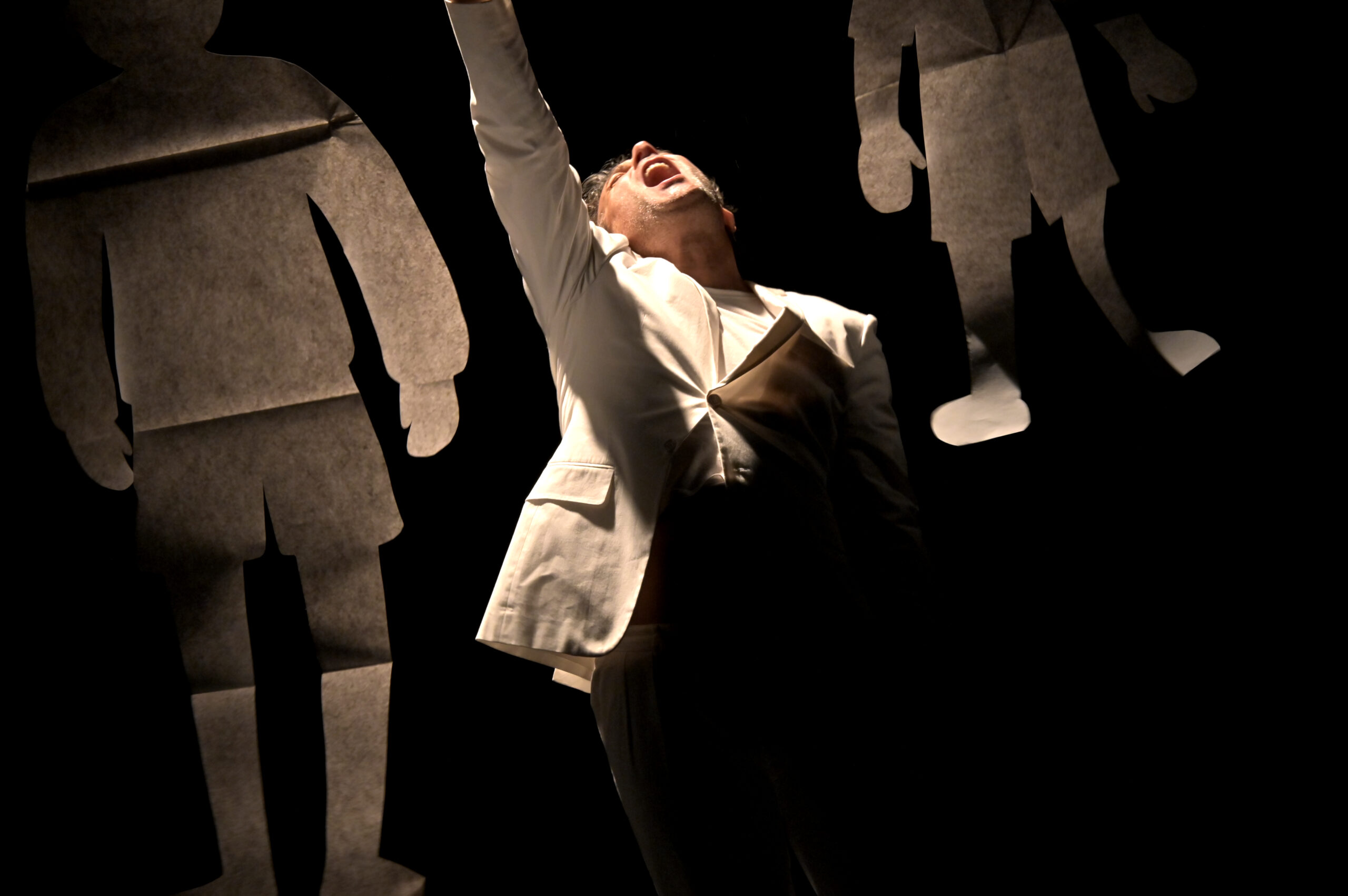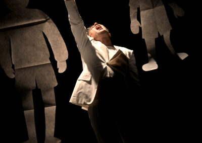 Geitorialità appunto, spettacolo per un solo attore con sagome di carta, è la personale