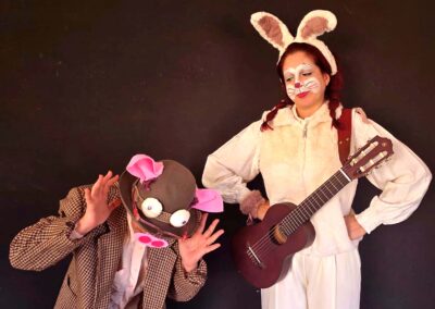 E’ uno spettacolo musicale, ludico e iterativo. I bambini partecipano alle avventure di Lola aiutandola nella sua missione grazie a intermezzi cantati, pantomime e lezioni di combattimento pacifico ispirate al regno animale. I piccoli diventano protagonisti della storia aiutando Lola nelle sue avventure e per portare a termine la sua missione: nascondere l’uovo d’oro.