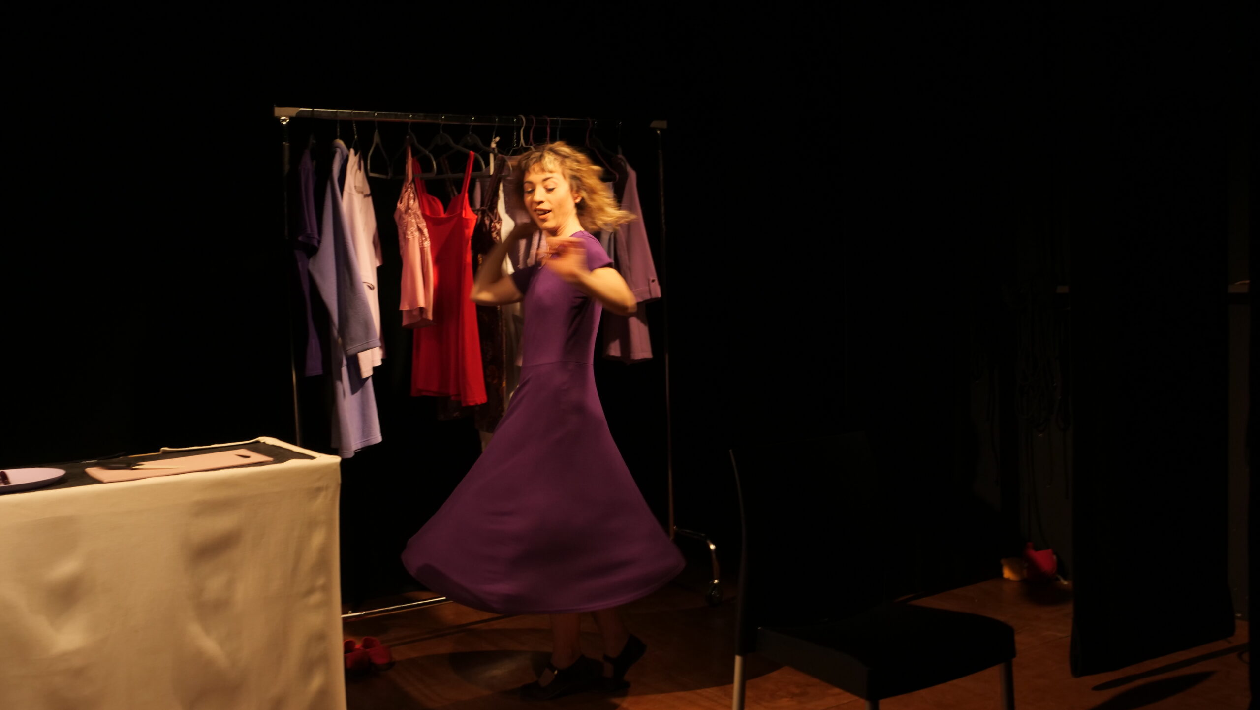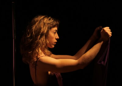 Lo spettacolo testimonia un momento della vita di una giovane donna, attraverso una narrazione indiretta, composta da frasi sconnesse e ripetitive, da immagini potenti e da una intensa carica emotiva.