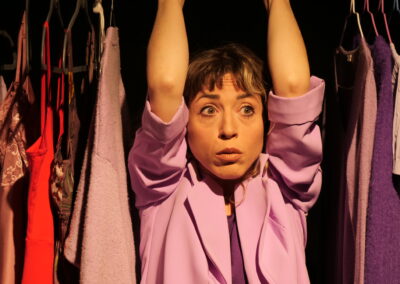 Viola è ispirato al testo di Annibale Ruccello, Anna Cappelli. Ironico, drammatico e paradossale, lo spettacolo evidenzia le difficoltà di una donna sola, che vive la propria quotidianitá con volumi molto differenti rispetto alle persone attorno a lei. Il viaggio straniante in una realtà apparente, la porta a distorcere tutto ciò che la circonda. Costruisce relazioni (forse immaginarie) che acuiscono il proprio senso di isolamento, di frustrazione e di fallimento personale. E piú si allontana il lieto fine che lei tanto desidera, piú perde il controllo di sé stessa, accentuando un’ombra scura… viola come lei.