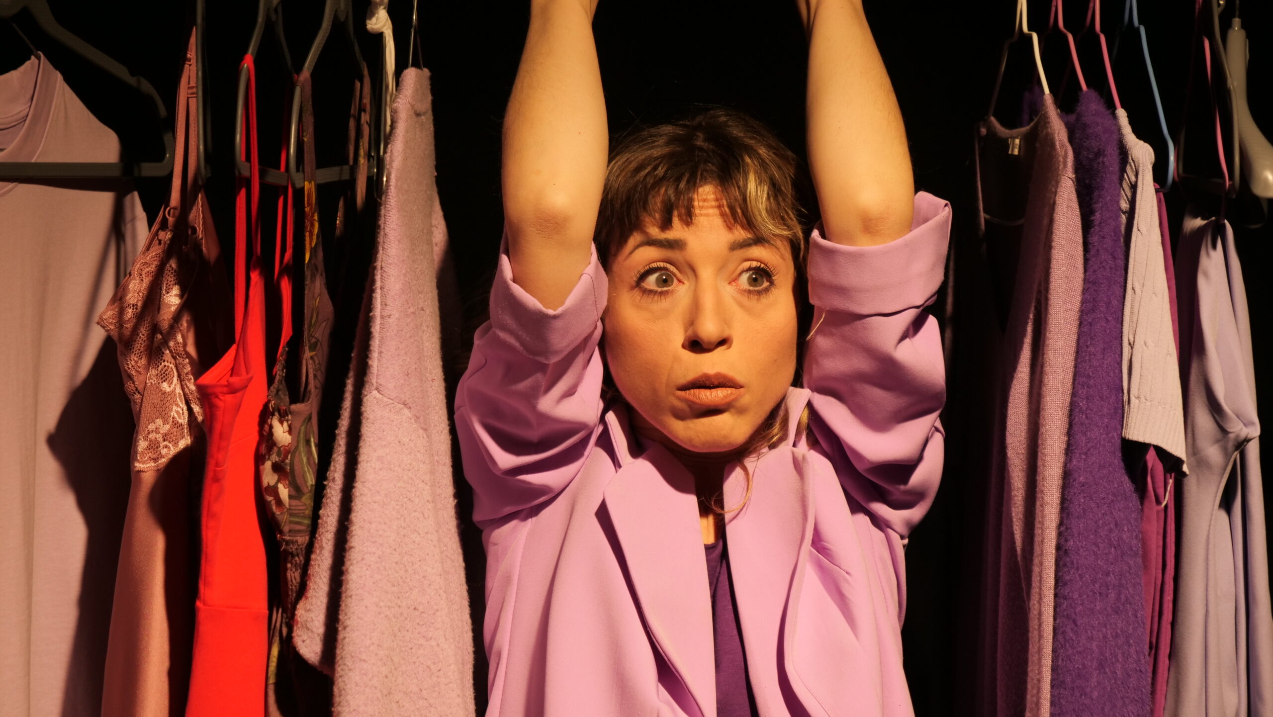 Voglio stare sempre abbracciata a te…” In uno spazio bianco, spoglio, con pochi oggetti essenziali ed evocativi, alcune luci proiettano immense ombre sulle pareti candide e una persona, sola, racconta il dramma che vive in se stessa, nelle sue prigioni fisiche e mentali.